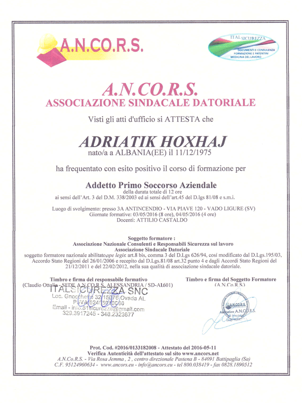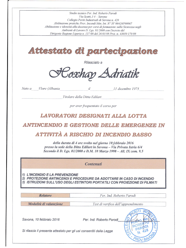 - Lotta antincendio e gestione delle emergenze in attività a rischio di incendio basso